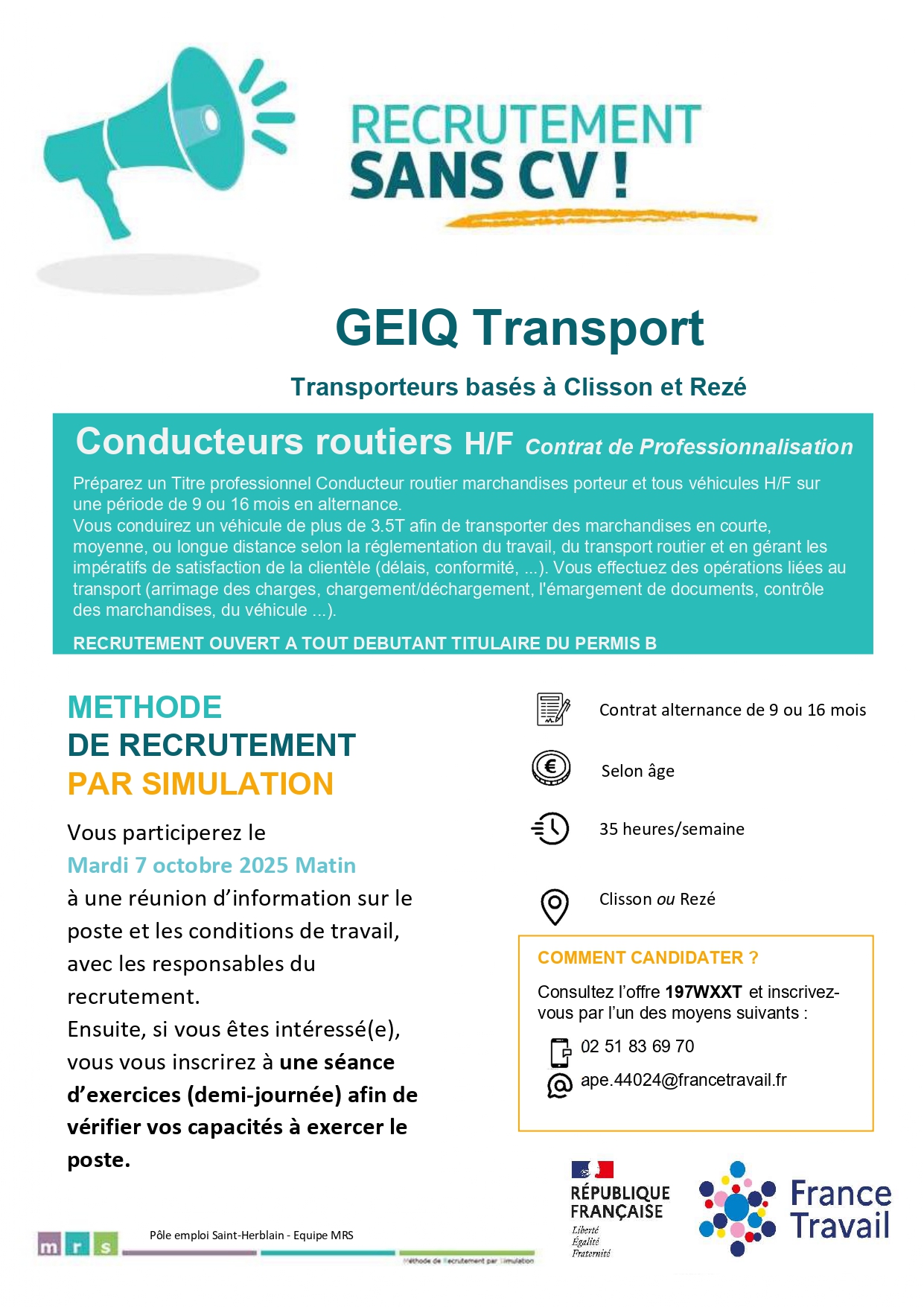 Ne manquez pas la Méthode de Recrutement par Simulation (MRS) organisée par l’équipe MRS et France Travail Clisson :
