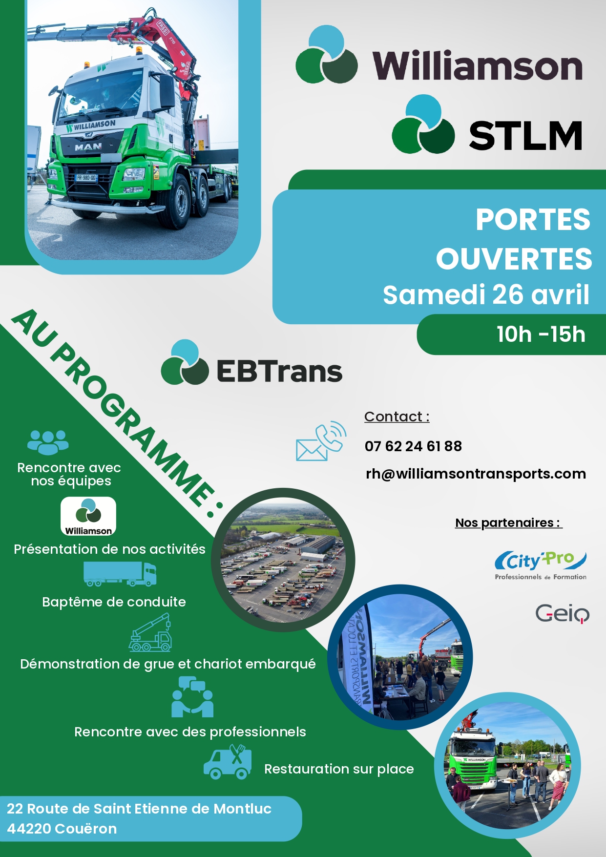 🚛 Le GEIQ Transport sera présent, avec City’Pro – Professionnels de formation, aux Portes Ouvertes de WILLIAMSON TRANSPORTS :
