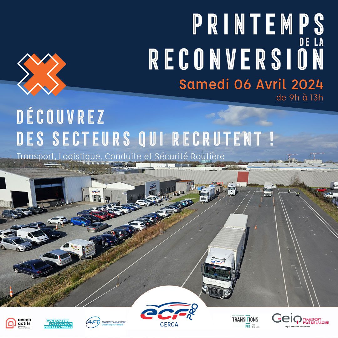 🚛 Le GEIQ Transport participe au🌸« printemps de la reconversion » 🌼organisé par les centres de formation ECF CERCA des Pays de la Loire (Angers, Cholet et Nantes) :